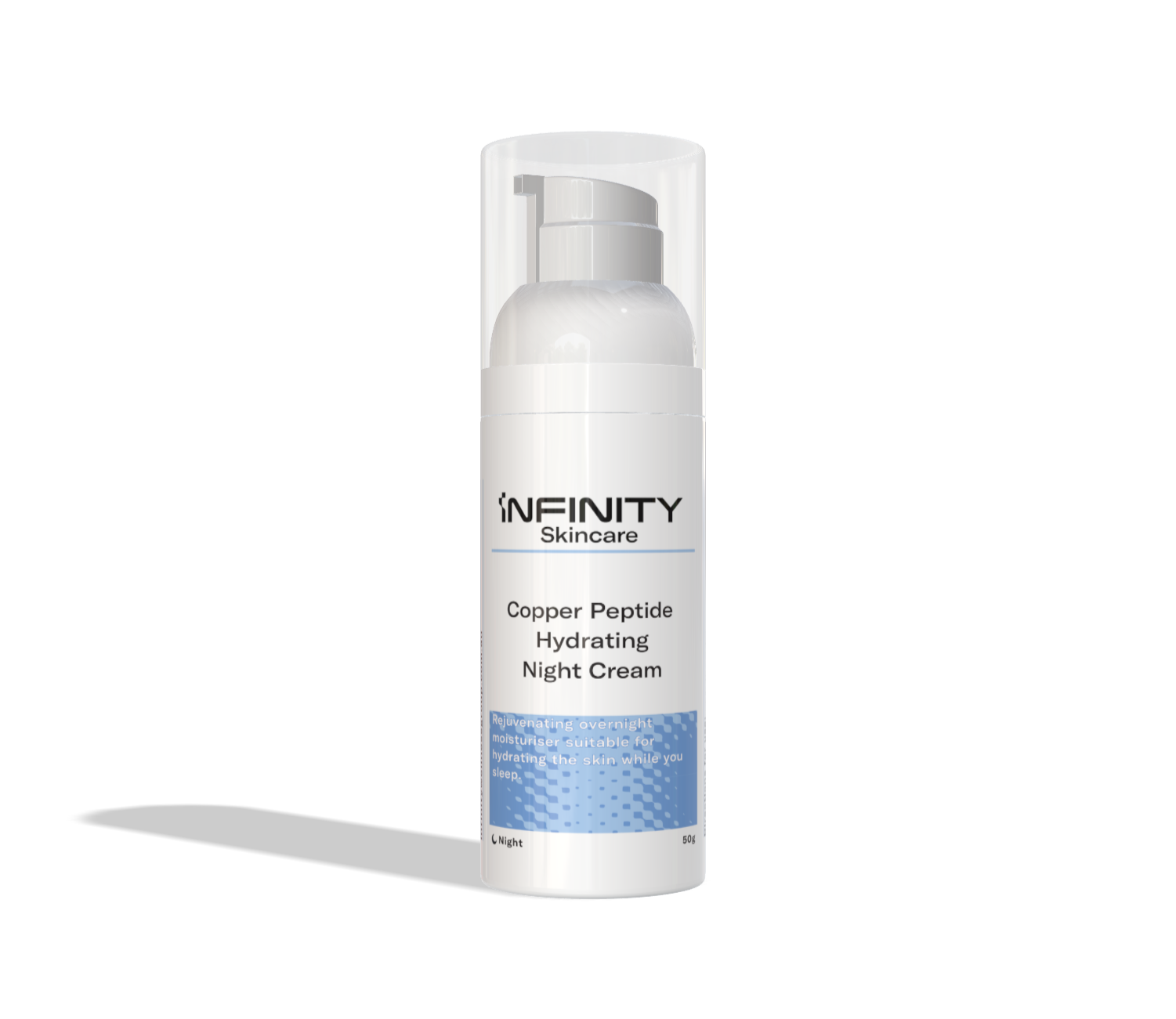 Enriched with Shea Butter, Squalene and Lavendar Oil, the Copper Peptide Hydrating Night Cream nourishes and restores moisture overnight. Palmitoyl tetrapeptide-7 and Copper tripeptide-1 support skin repair and firmness to reduce the appearance of fine lines for a bright and youthful complexion.