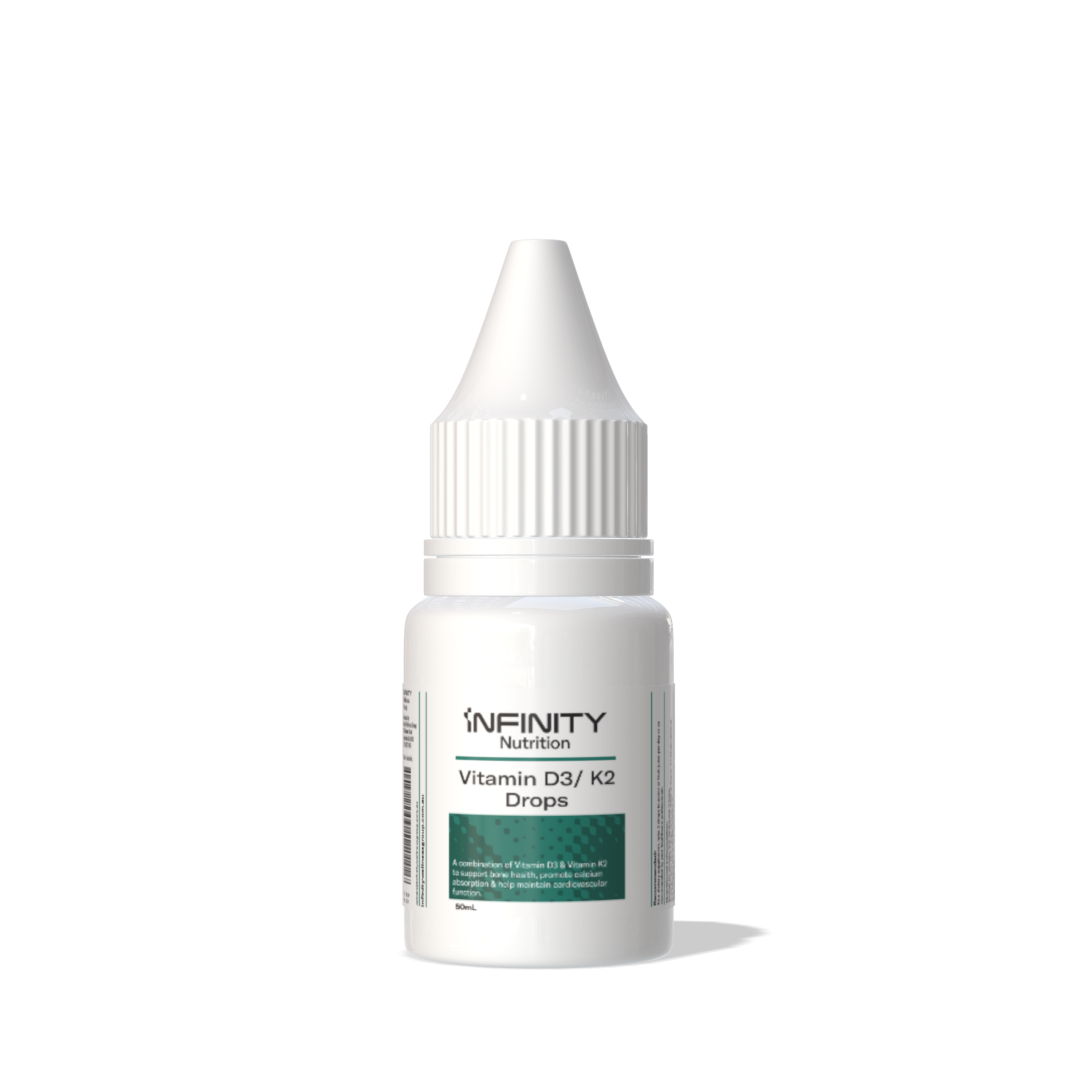 Each Serve (2 drops) contains 500 IU of Vitamin D3 (cholecalciferol) and 100 mcg of Vitamin K2 (MenaQ7)